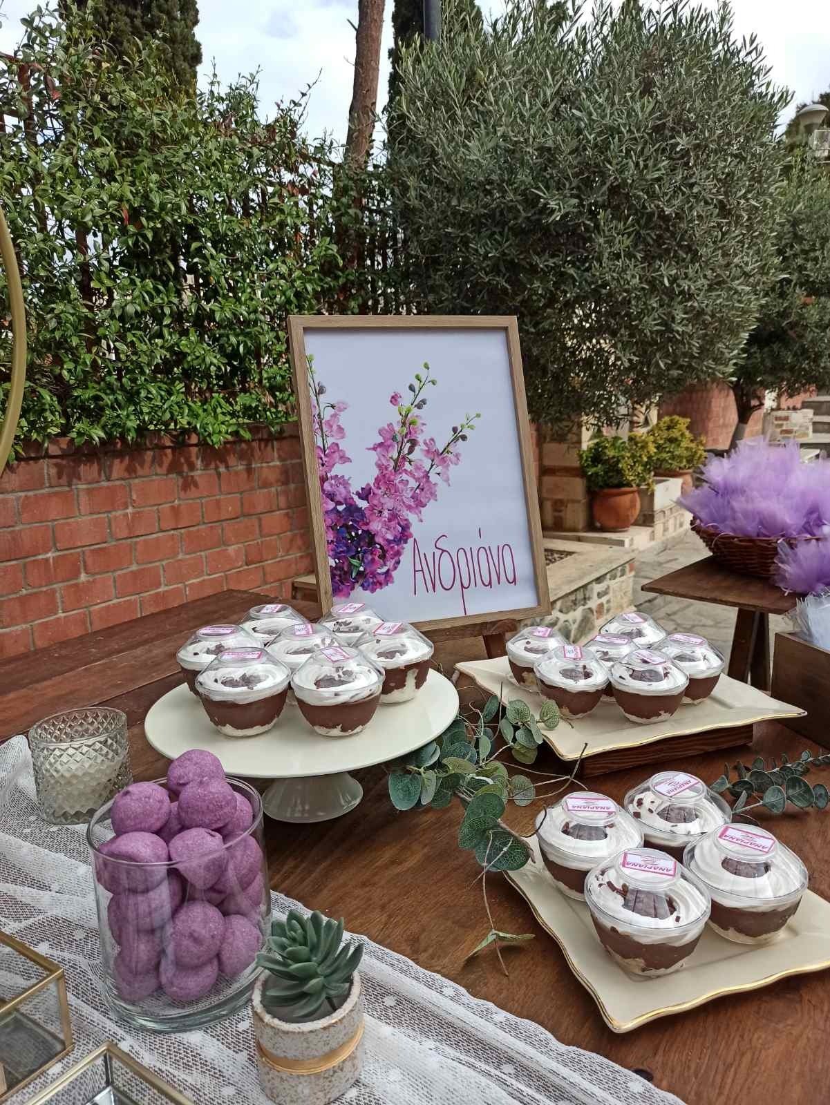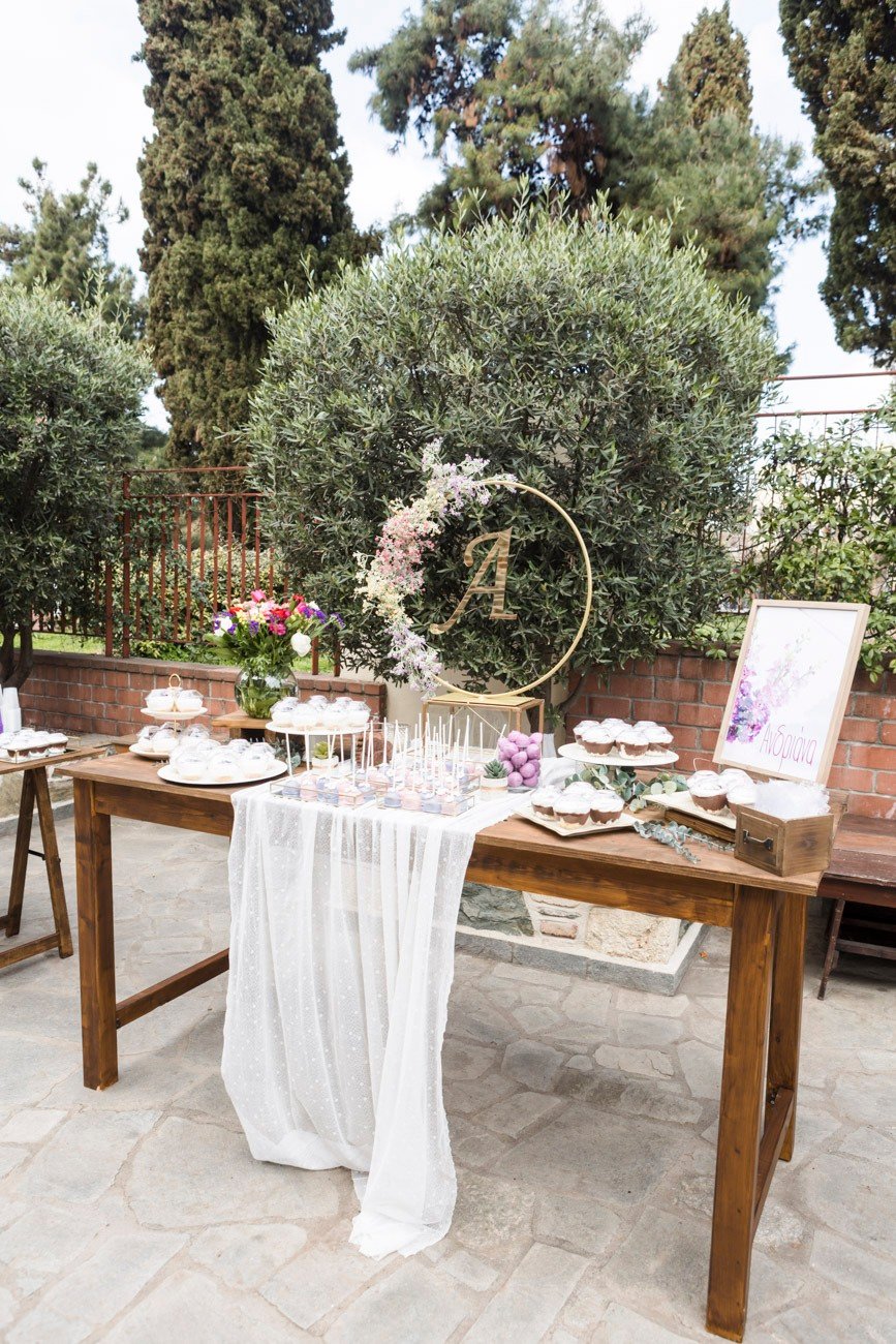 Candy Bar με γλυκές απολαύσεις διακοσμημένες σε παστέλ αποχρώσεις και floral λεπτομέρειες.