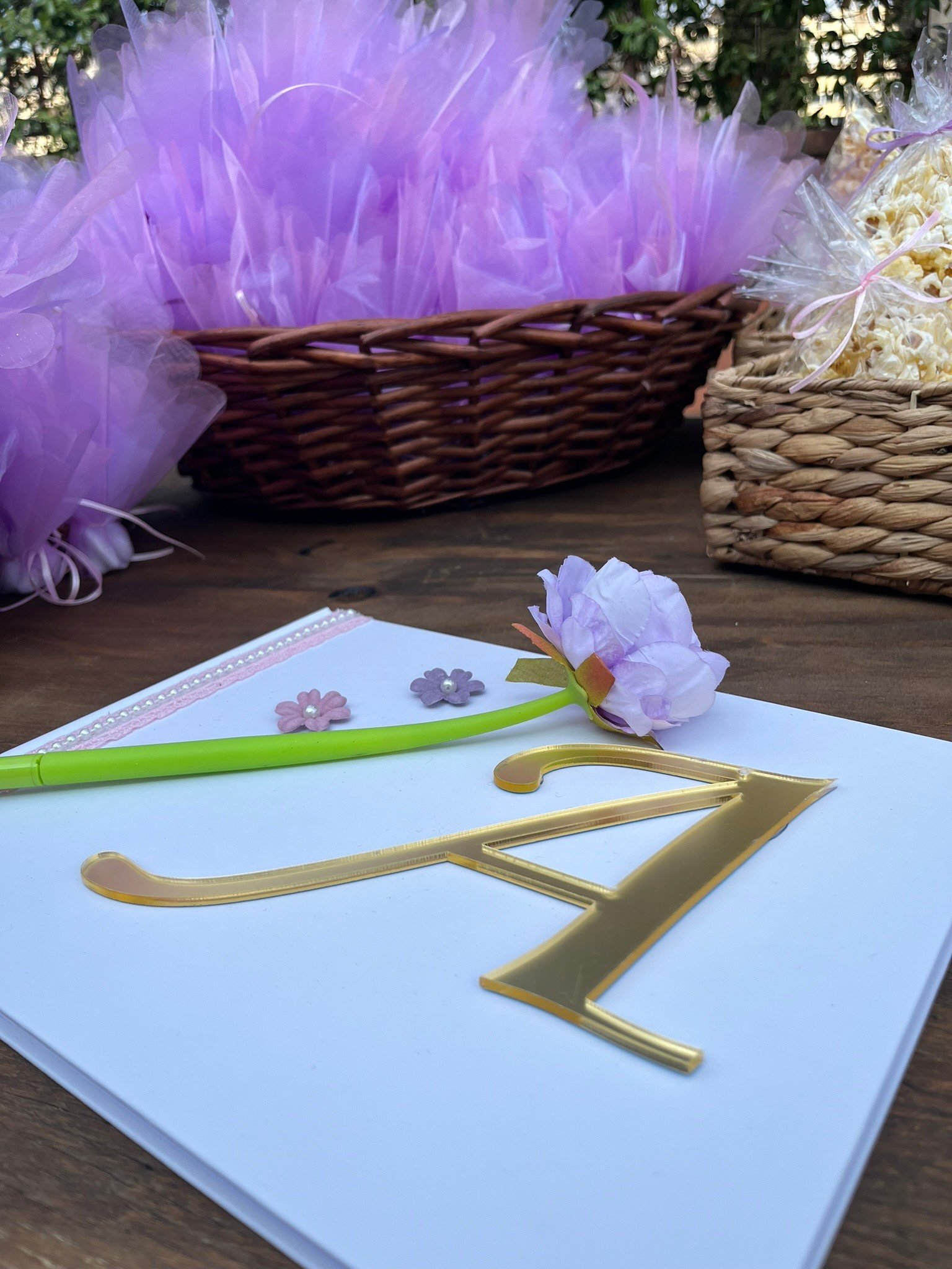 Ένας στολισμός που συνδυάζει την αριστοκρατική απλότητα του μονογράμματος με τη φυσική ομορφιά των λουλουδιών.