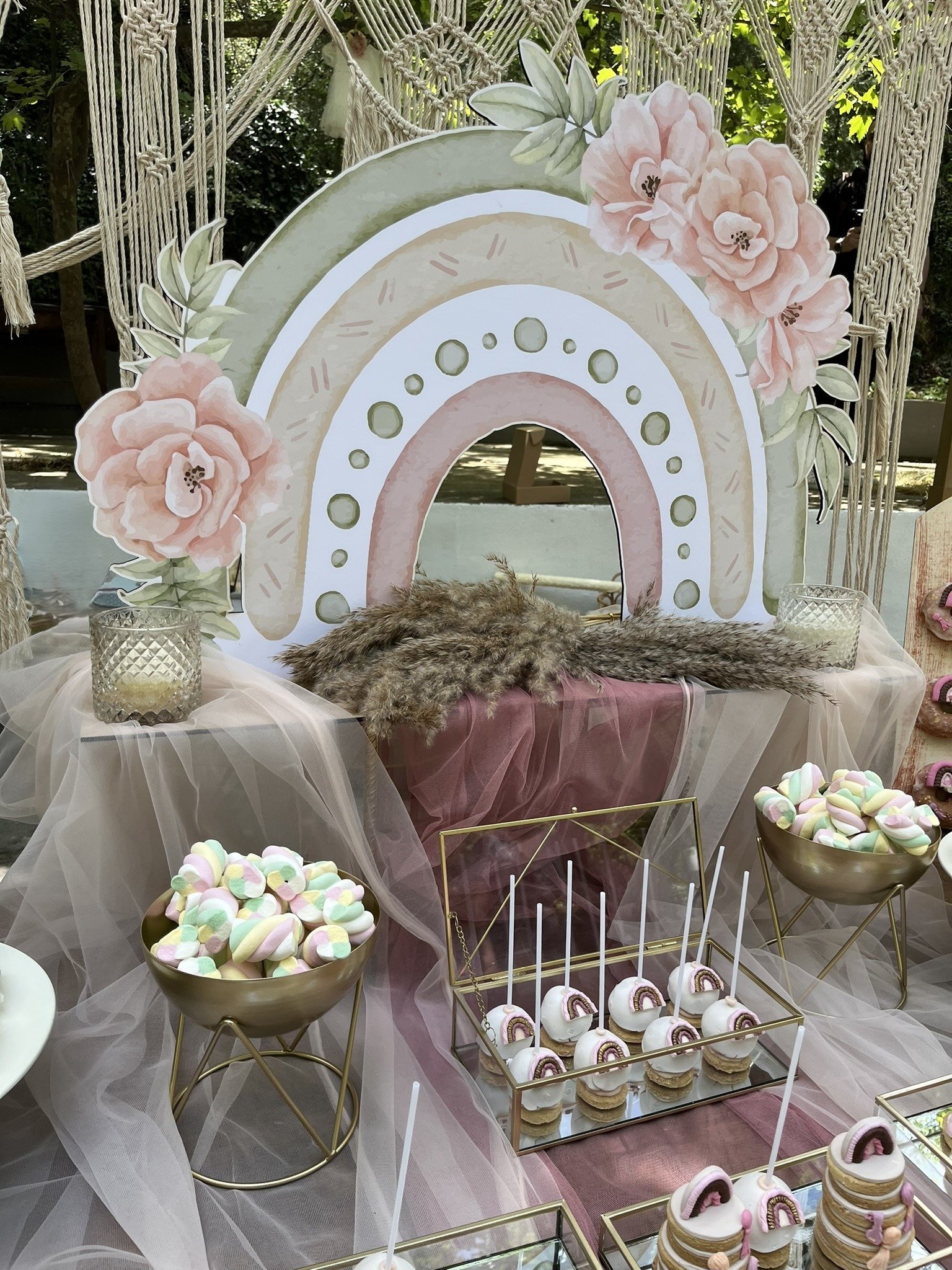 Ένας μαγικός στολισμός βάπτισης με το ουράνιο τόξο να γεμίζει τον χώρο με χρώμα και φως. Απαλές και ζωηρές αποχρώσεις δημιουργούν ένα ονειρικό σκηνικό, ιδανικό για μια αξέχαστη ημέρα.