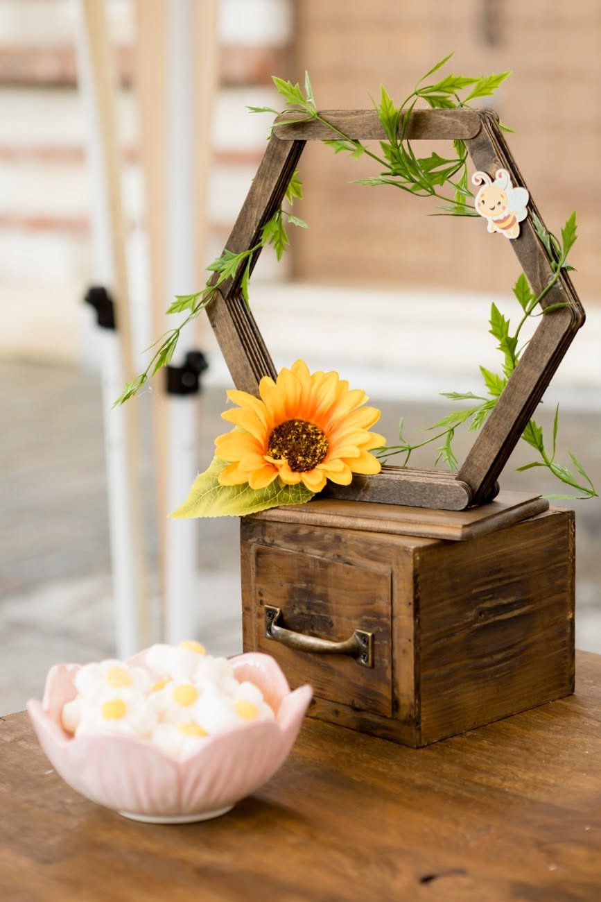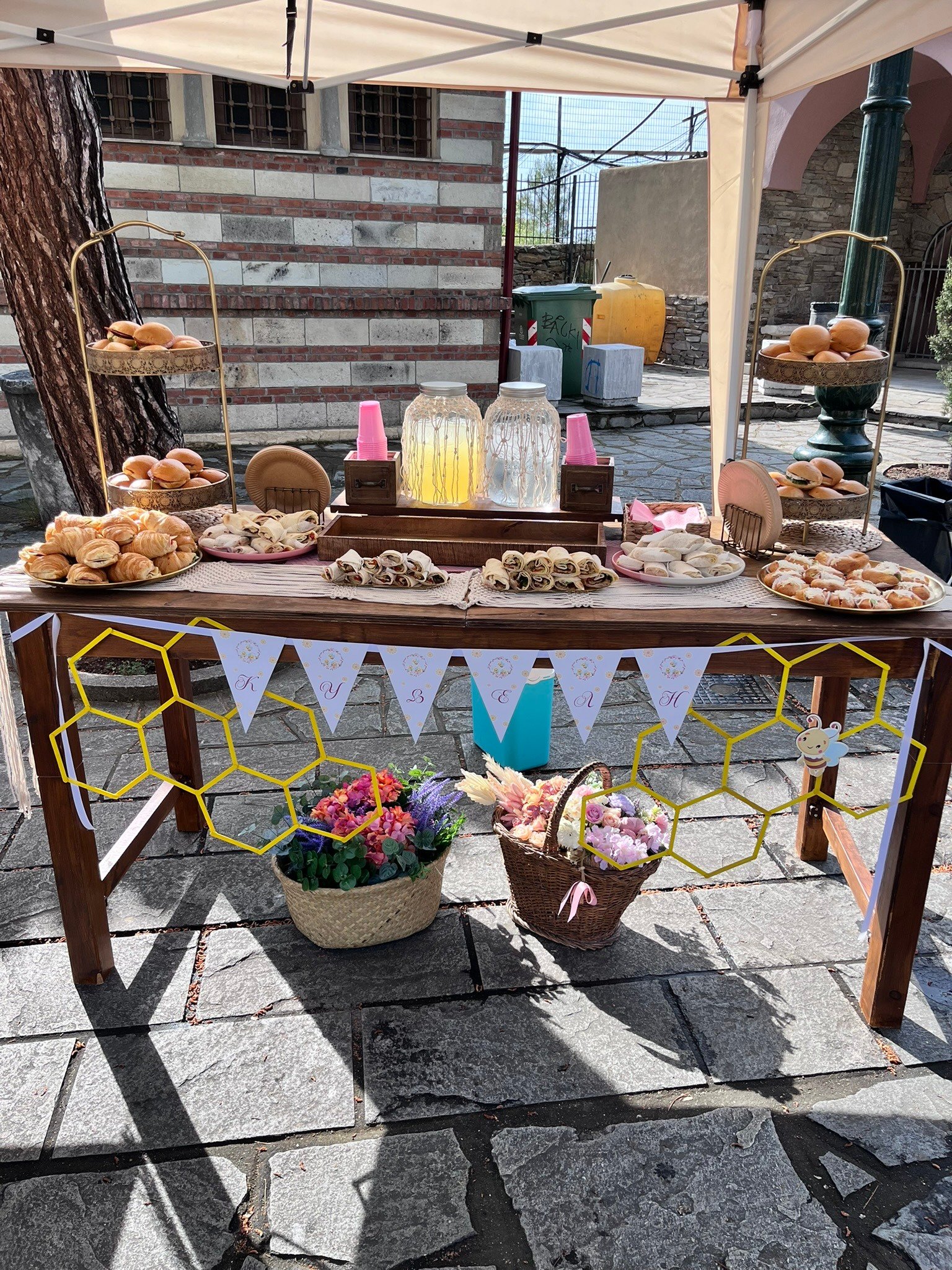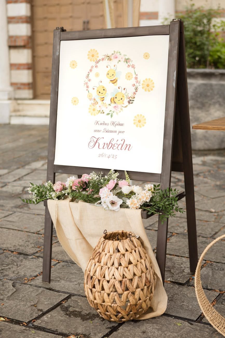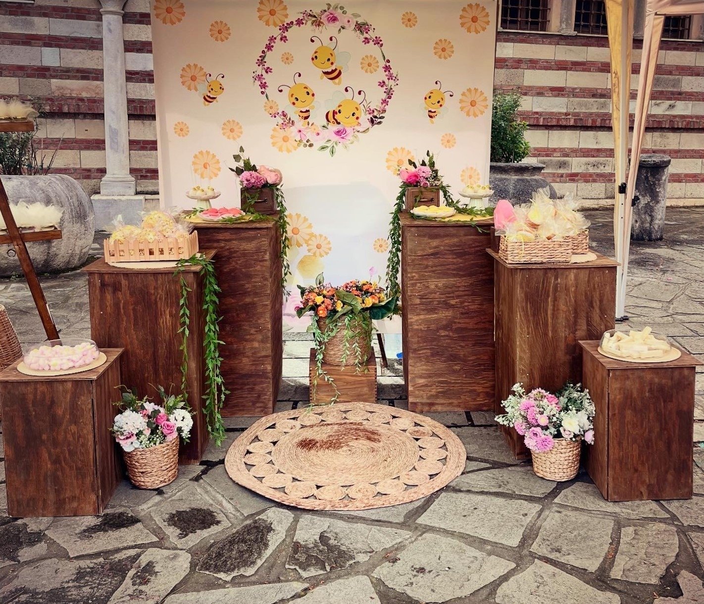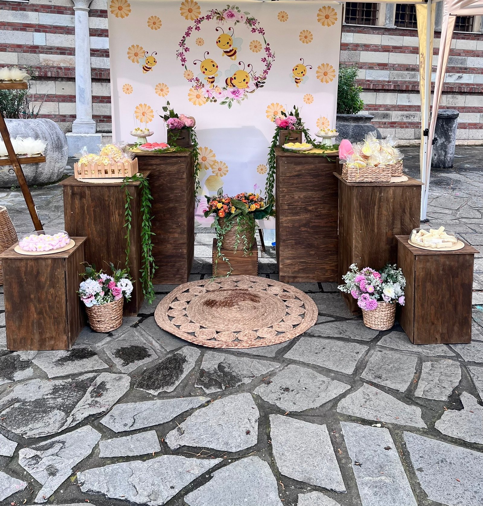 Ένας στολισμός βάπτισης γεμάτος φως, χαρά και φυσική ομορφιά, εμπνευσμένος από τη μέλισσα – το σύμβολο της γλυκύτητας και της δημιουργικότητας. Ξύλινα έπιπλα, υφές από λινάτσα και φυσικές λεπτομέρειες, ηλιόλουστα λουλούδια και διακοσμητικά στοιχεία σε τόνους κίτρινου και λευκού συνθέτουν ένα γήινο, κομψό σκηνικό. Ιδανικό για καλοκαιρινές βαπτίσεις σε αυλή ή εξωτερικό χώρο, αυτή η διακόσμηση συνδυάζει το παραδοσιακό με το μοντέρνο με τρόπο μοναδικό και αυθεντικό.